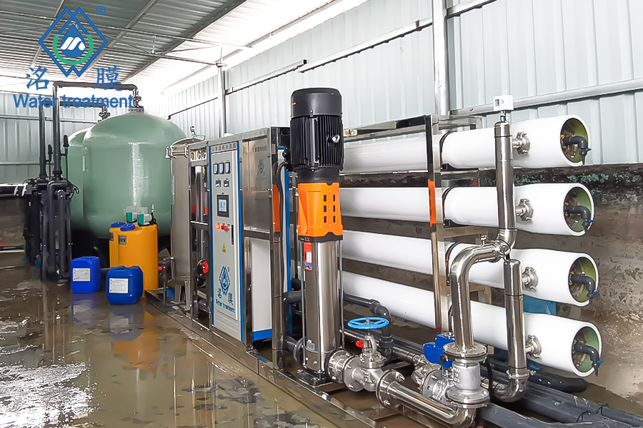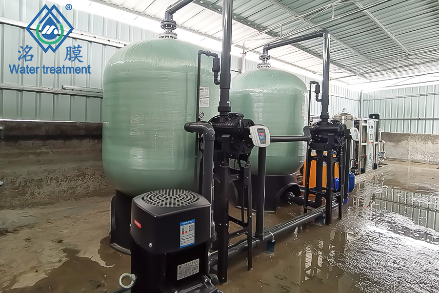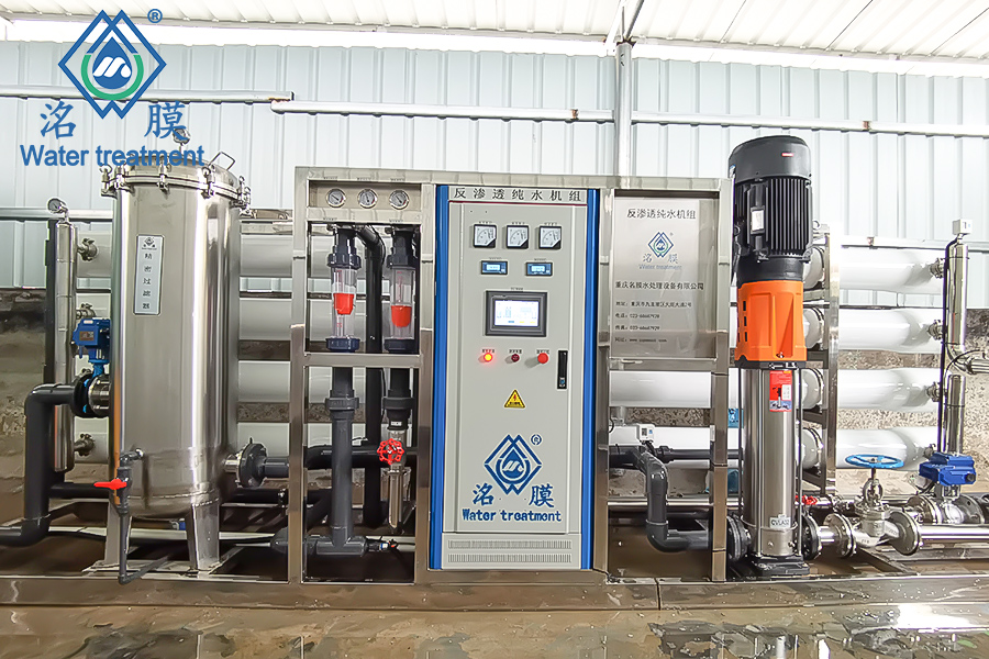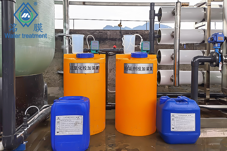 工藝:自來水→多介質(zhì)過濾器→吸附過濾器→抗氧化保護系統(tǒng)→阻垢劑保護系統(tǒng)→RO反滲透→純凈水