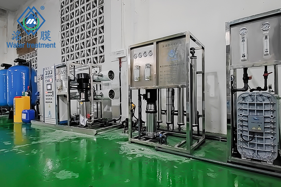 工藝:介質(zhì)過濾-吸附過濾-精密過濾-阻垢劑-RO反滲透膜-1級(jí)純水箱-2級(jí)RO反滲透膜-2級(jí)純水箱-精密過濾器-EDI-超純水箱