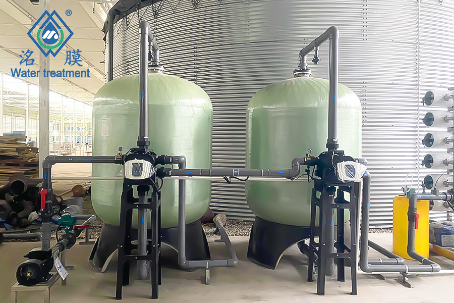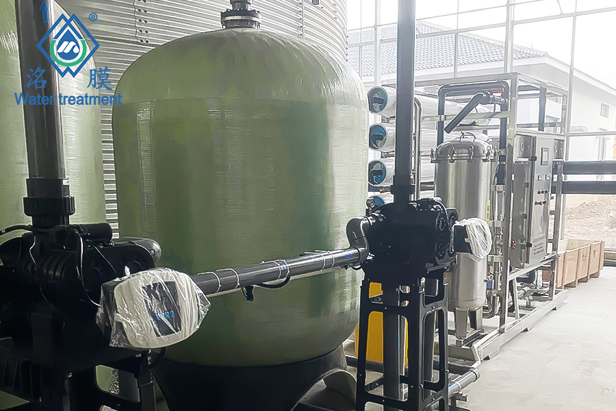 原水:自來水處理用途:噴霧灌溉處理工藝:石英砂→活性炭→精密過濾器→反滲透膜組處理量:12T/H