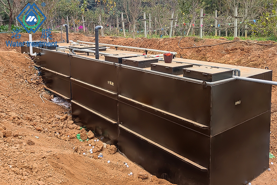 項目地址:云南省紅河哈尼族彝族自治州彌勒市葡萄觀光大道東風(fēng)韻景區(qū)原水:生活污水外理量:90方/天工藝:厭氧池+好氧池+沉淀池+過濾系統(tǒng)+消毒排放標準:一級A標準(綠化回用)