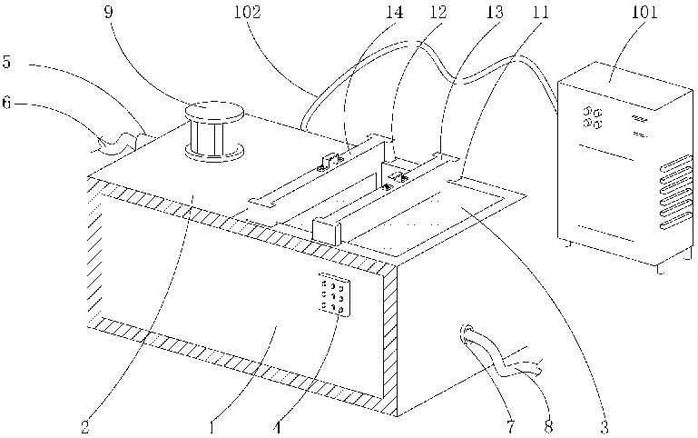 5.根據(jù)權(quán)利要求4所述的一種高效的污水處理裝置,其特征在于:所述消毒組件(10)包括臭氧發(fā)生器(101)和連接管(102),所述臭氧發(fā)生器(101)的一端固定連接有連接管(102),所述連接管(102)的末端與污水池(1)固定相連。