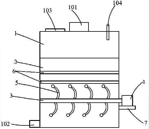生活污水處理 :本申請公開了一種用于污水處理的預(yù)處理箱體,包括箱體,箱體的頂部設(shè)有進(jìn)水口,箱體的底部設(shè)有出水口,箱體內(nèi)設(shè)有過濾板,濾板截面呈弧形,箱體內(nèi)設(shè)有攪拌軸,