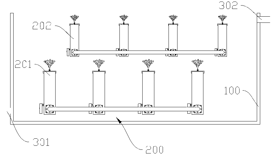 污水設(shè)備安裝 :本發(fā)明公開了一種高效曝氣池,包括池體、曝氣系統(tǒng)、進(jìn)水口、出水口,其特征在于:所述曝氣系統(tǒng)為多級曝氣,至少包括設(shè)于池體底部的第一級曝氣,設(shè)于所述第一級