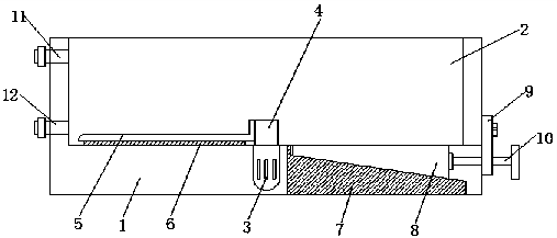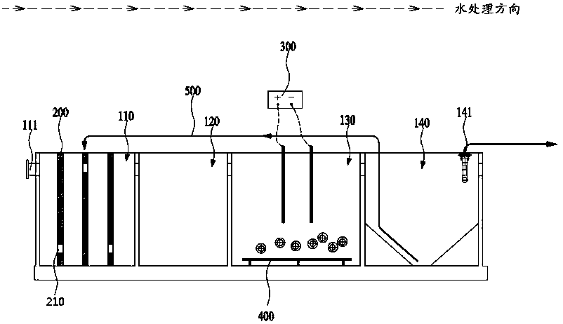 本申請屬水處理設(shè)備技術(shù)領(lǐng)域,尤其涉及一種適用于污水一體化廢水處理設(shè)備的可調(diào)回流裝置,包括水池本體,所述水池本體內(nèi)部設(shè)置隔板,所述隔板將水池本體內(nèi)部分割為不同的功能