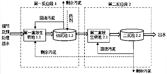 廢水處理 :本發(fā)明提供了兩段法生物強化脫氮工藝,包括:經(jīng)過調(diào)節(jié)及預(yù)處理的污水依次進入生物反應(yīng)區(qū)的第一反應(yīng)段和第二反應(yīng)段,第一反應(yīng)段包括第一高效生物池、初沉池,第二反