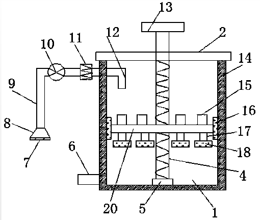 本發(fā)明公開一種工業(yè)污水處理工藝,包括調(diào)節(jié)操作?一級過濾?二級過濾?脫色操作?排水處理操作步驟,具體步驟如下:步驟一,調(diào)節(jié)操作,開啟蓄水箱的密封圓蓋,使得蓄水箱與工