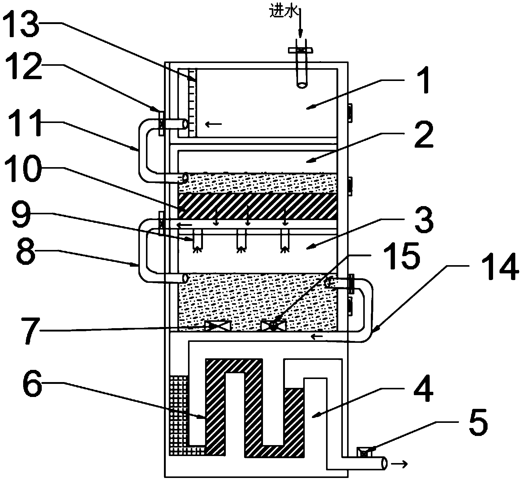 污水設(shè)備安裝方案 :本實用新型公開了一種具有預(yù)過濾功能的化糞池,屬于化糞池的技術(shù)領(lǐng)域,旨在提供一種可對污水進行預(yù)處理的化糞池,其技術(shù)方案要點是包括敞口式池體,所述池