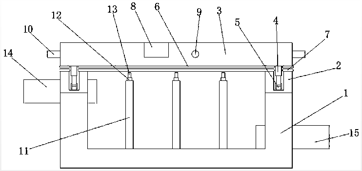本實用新型是一種小型家用污水處理凈化裝置,包括凈化箱體和支撐腳,其特征在于,所述凈化箱體的箱體體身呈中空的長方體結(jié)構(gòu)設(shè)置,所述絲杠上通過螺紋套有移動塊,所述凈化箱