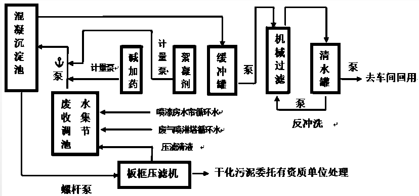 大型污水設(shè)備 :本申請公開了一種便捷集成式噴漆廢水處理及回用系統(tǒng)與方法,污水依次通過如下設(shè)備處理:廢水收集調(diào)節(jié)池,儲存污水以及穩(wěn)定水質(zhì);中和、混凝沉淀裝置,連接有加藥