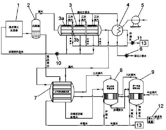 工廢水處理系統(tǒng)及其處理方法,屬于廢水處理技術(shù)領(lǐng)域。該煤化工廢水處理系統(tǒng)包括濕式氧化器、廢水預(yù)濃縮子系統(tǒng)和結(jié)晶子系統(tǒng)。煤化工廢水在進(jìn)入濕式氧化反應(yīng)器前,在低溫多效蒸