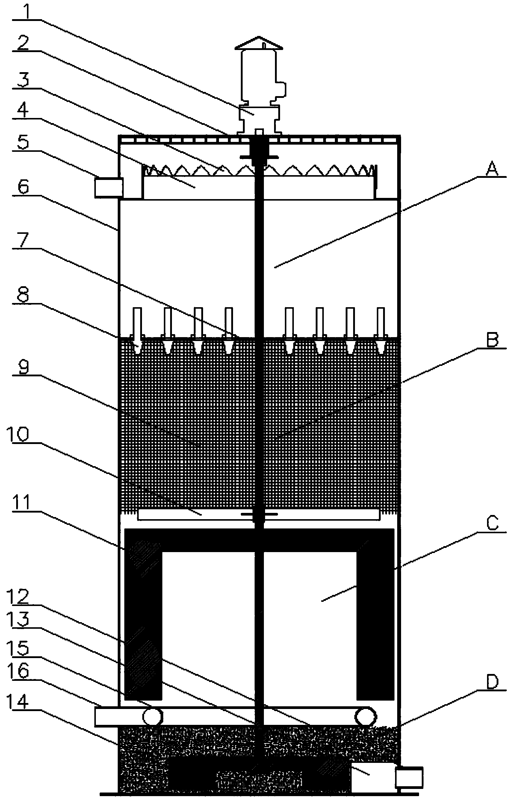本發(fā)明公開(kāi)了一種光伏不銹鋼廢水總氮處理成套化設(shè)備,包括前置碳酸鈣反應(yīng)器、前置沙水分離器和脫氮反應(yīng)器,前置碳酸鈣反應(yīng)器上設(shè)有供待處理污水進(jìn)入的進(jìn)水口,前置碳酸鈣反應(yīng)