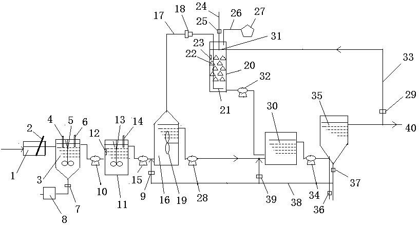 本發(fā)明公開了一種豬場(chǎng)廢水厭氧產(chǎn)氫與達(dá)標(biāo)排放處理方法,該方法是將豬場(chǎng)沖洗廢水通過格柵后,進(jìn)入MAP沉淀池進(jìn)行預(yù)處理,沉淀后上清液送入廢水調(diào)節(jié)池,調(diào)節(jié)上清液pH值后送入?yún)捬?/p>