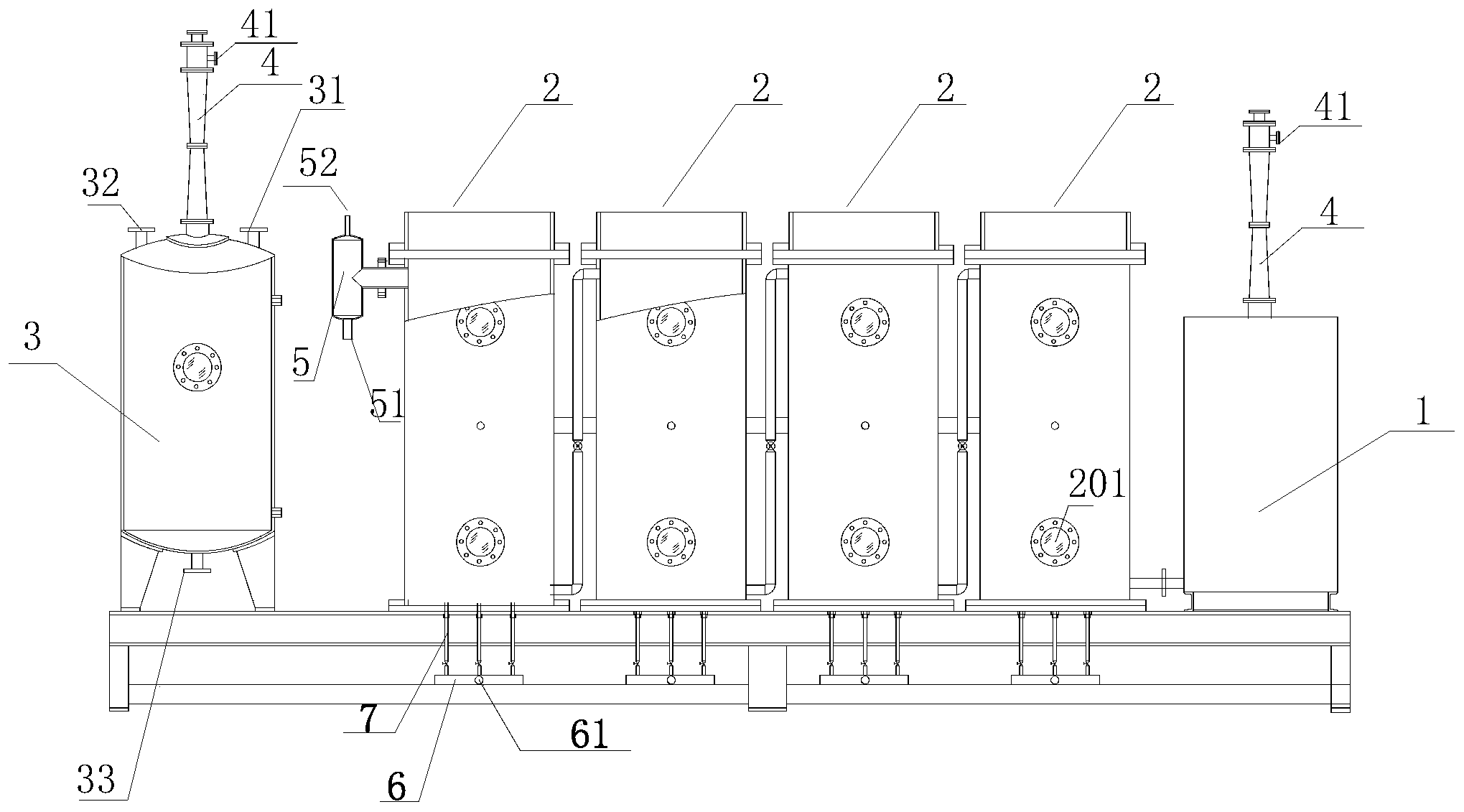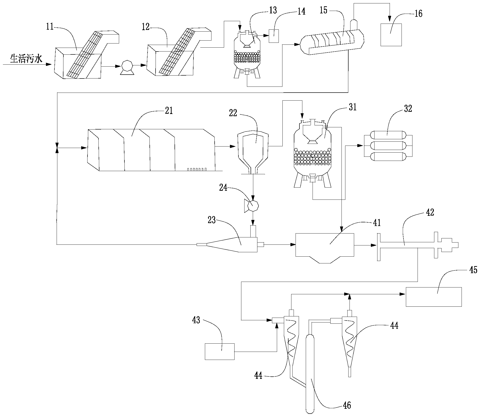 本發(fā)明涉及污水處理技術(shù)領(lǐng)域,尤其是一種用于生活污水處理的剩余污泥非相變干化處理系統(tǒng),其包括儲(chǔ)泥池、帶式脫水機(jī)、熱氣發(fā)生裝置、氣液分離器、多個(gè)依次串聯(lián)連接在一起的第